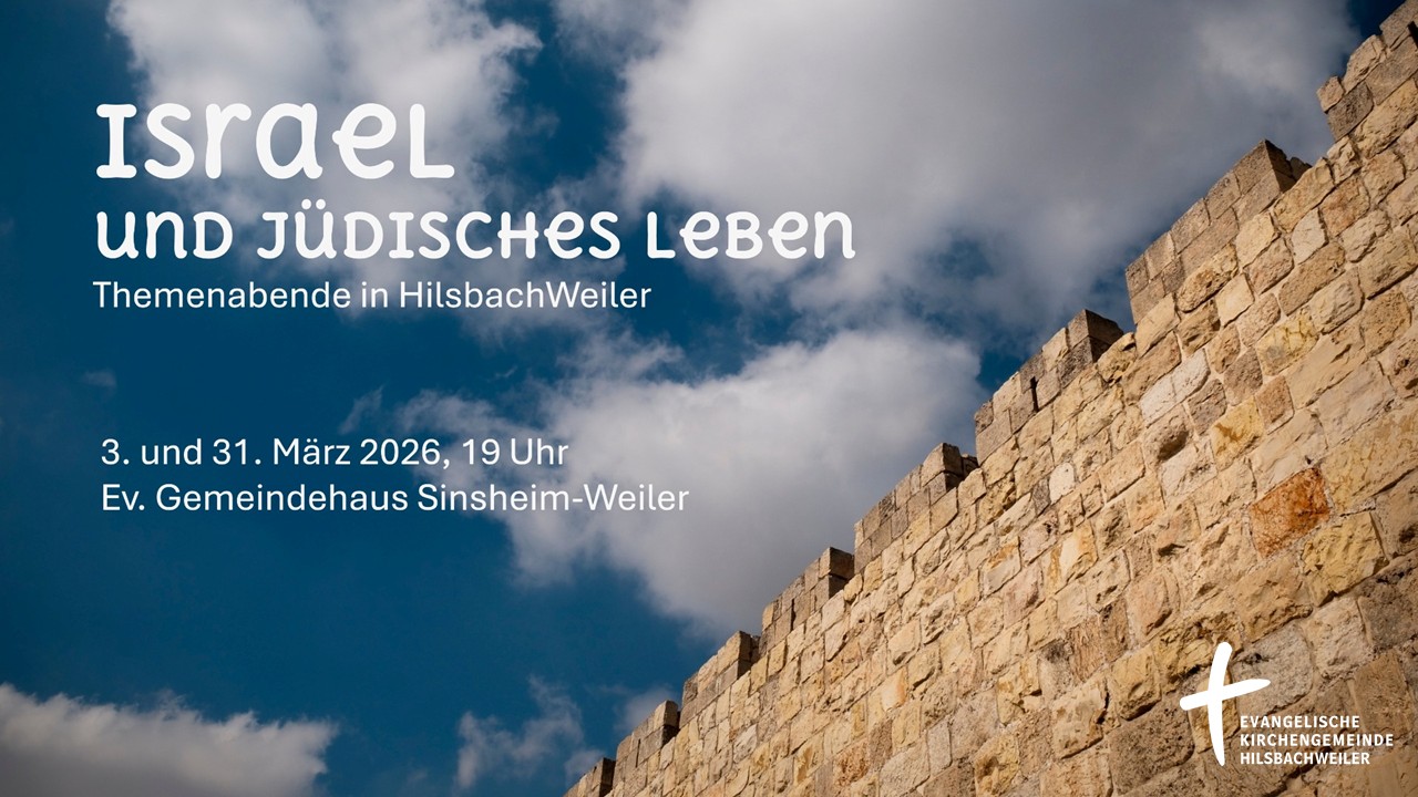 Die Geschehnisse in Israel und im Nahen Osten sind seit Jahrzehnten in unseren Medien präsent und beschäftigen uns auch hier in Deutschland. Die zwei Themenabende „Israel und jüdisches Leben – Was hat das mit uns zu tun?“ möchten den Teilnehmern Einblicke in die Verbindung der theologischen Aspekte Israels mit dessen aktuellen politischen und gesellschaftlichen Situation … [Weiter…]